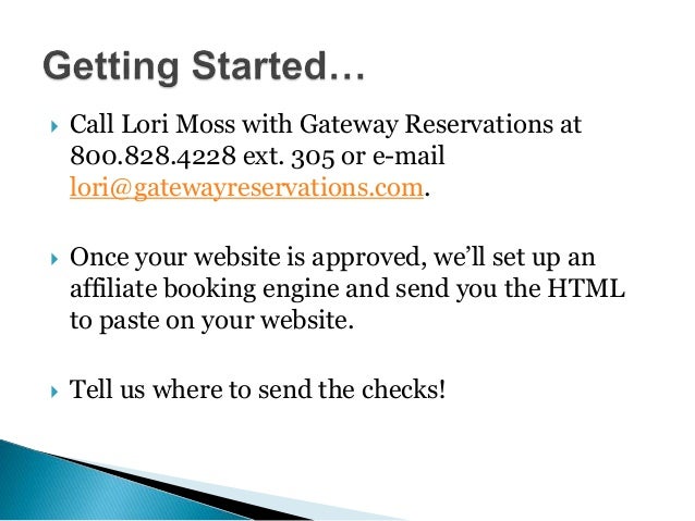 *Fees charged by Gateway Reservations are subject to change or adjustment. Option 1 – The Simple Online Booking Engine (cont.) Gateway Reservations will provide the GJCVB with a comprehensive Online Booking Engine (herein referred to as an OBE) which will not include any Call Center support. October 1, 2012 Gateway Reservations ... Fetch This Document